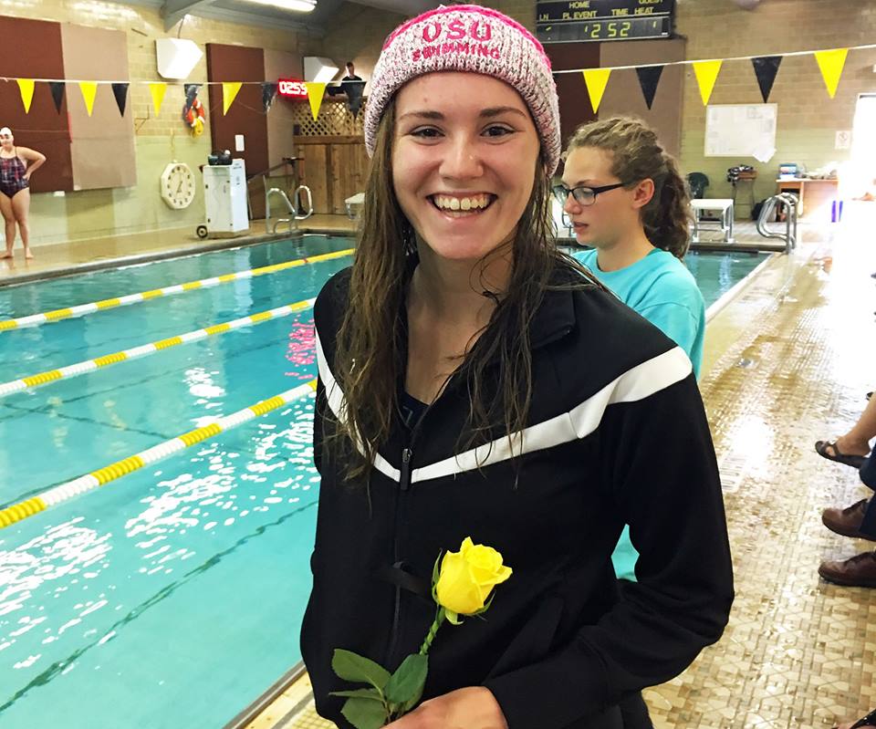 Lizzy, says her coach, "has a lot of people praying and pulling for her." A senior, Lizzie has been home-schooled and joined the swim team her freshman year in high school. She was one of the seniors in Hesson's rookie year as coach.