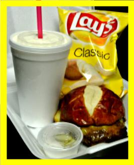 You can order a 1/2 lb. burger on a pretzel roll and chips for $6.00 and add a thick 16 ounce homemade chocolate or vanilla malt for another $2.00. The Lutheran Home accepts cash, check or debit/credit cards.