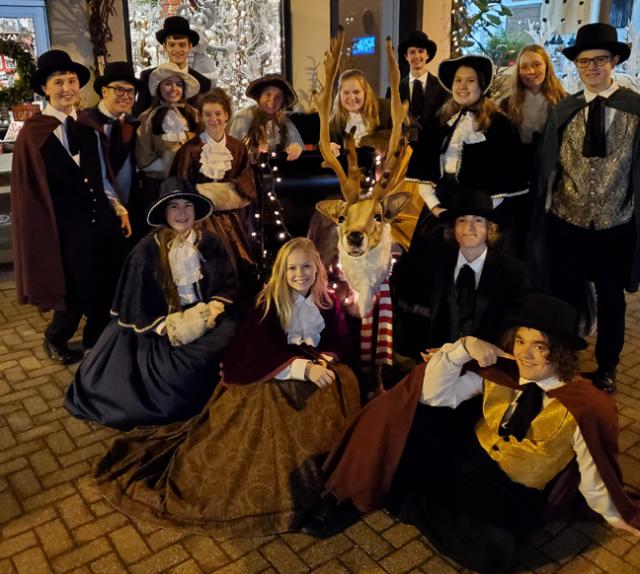 A Holiday staple in the Cedar Valley for the last 18 years is determined to not let the pandemic dampen their ability to spread holiday cheer. The Union High School Vocal Department is currently taking bookings for the Union Carolers for any holiday event in the Northeast/Eastern Iowa area.  The Union Carolers is a 16-voiced a capella ensemble that will provide up to 20 minutes of holiday music for any festive event.  This group was the featured choir with the Waterloo/Cedar Falls Symphony on their Holiday Pops concert in Dec. of 2004 and has established itself throughout the Cedar Valley as a constant each holiday season.  The group will be completely attired in Dickens-era outfits complete with top hats on the men and muffs for the ladies.  To protect those in potential audiences, the group will have appropriate face coverings and perform at whatever distance with which the audience feels comfortable.  We will even perform outside in front of windows in order to help bring a sense of “normalcy” while still protecting audience members during this unprecedented time. The group does not charge a fee however a donation of any size to the vocal music department is expected to help off-set the group’s expenses for the year. We use this as our only fundraiser for the entire program.   So if you are in charge of the family Christmas, office party, club event, church tea, etc, this holiday season contact Tim J. Mitchell at Union High School by calling 319-342-2697 or email him at t_mitchell@union.k12.ia.us  to book your date early.  Times have begun to fill up so act fast.
