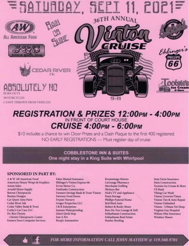 The 36th Annual Vinton Car Cruise is scheduled for Saturday, September 11. The map for the crusie is included in the pictures.