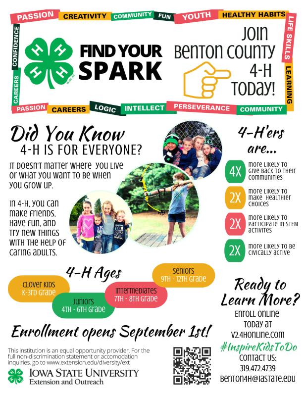Enrollment opened on September 1st to join Benton County 4-H!