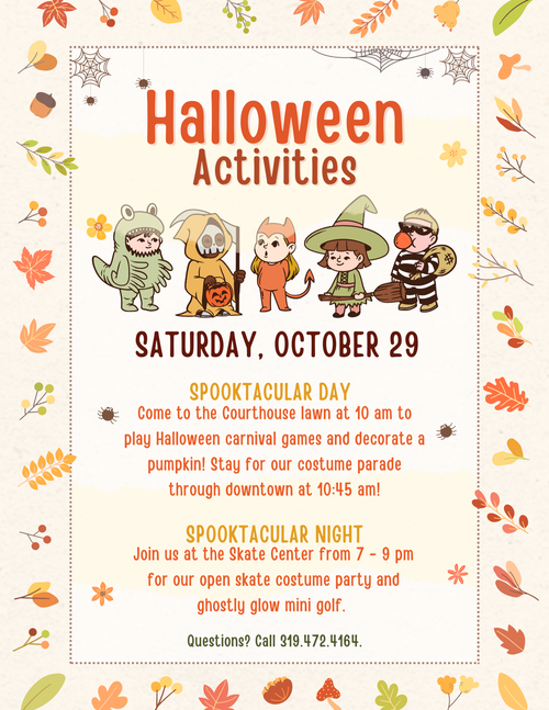 Children are invited to stop out for a treat at the facility. The Halloween Parade will be from 4-5:00 p.m.