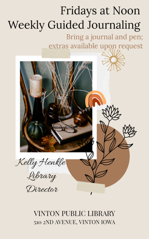 The Vinton Public Library will be hosting a Weekly Guided Journaling session at the library.