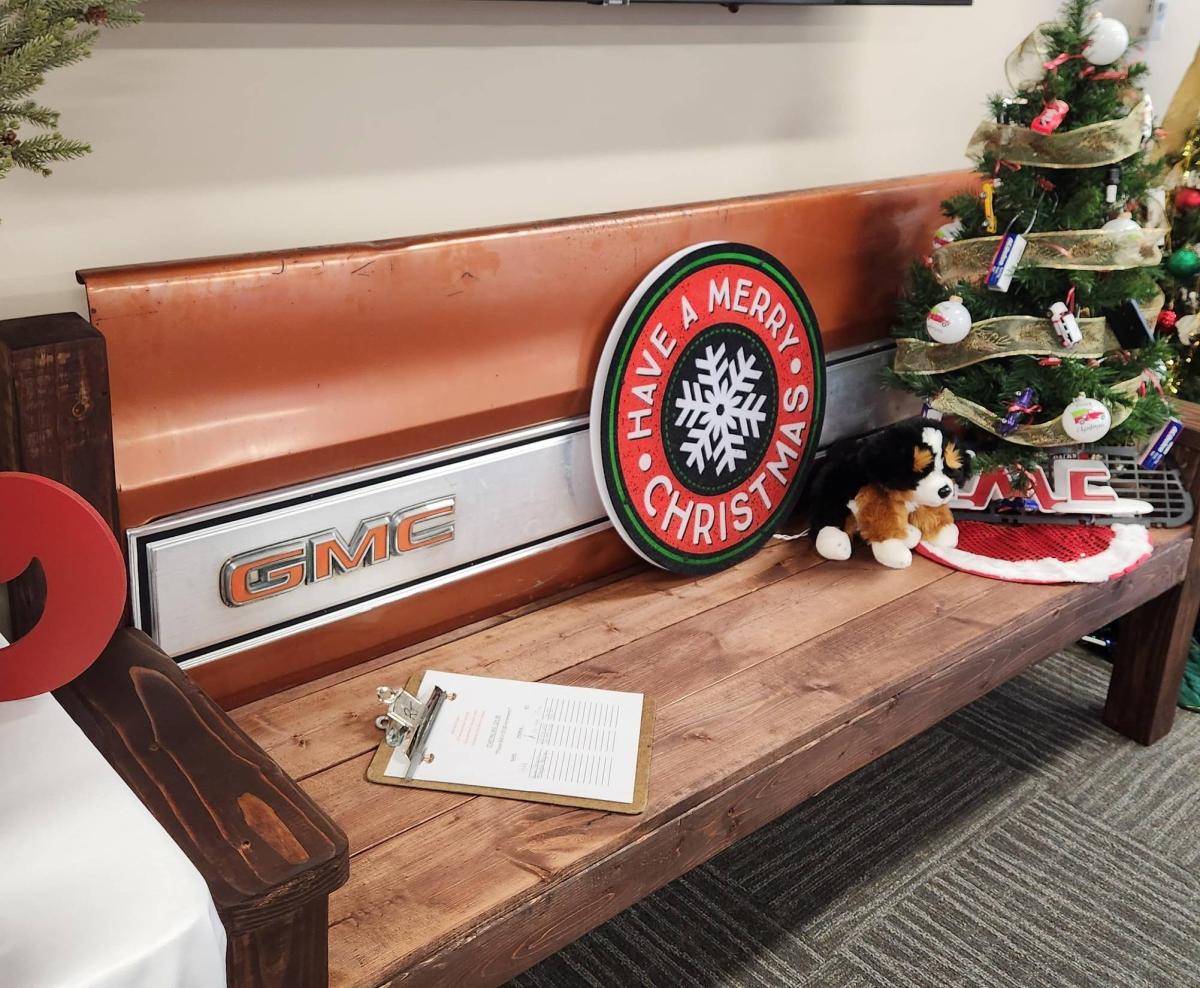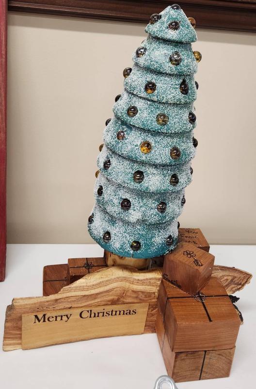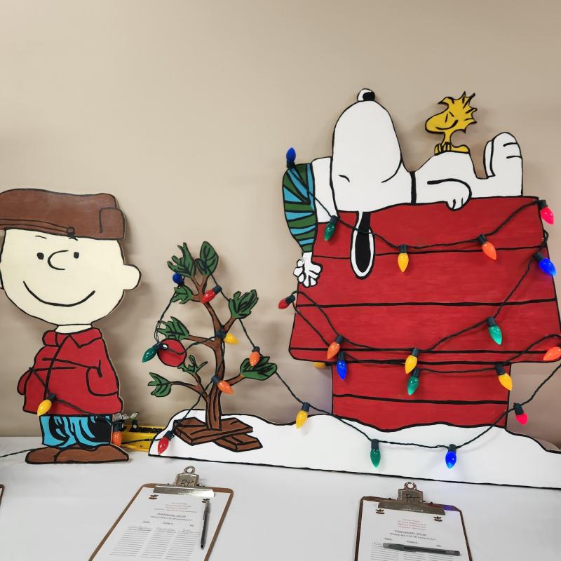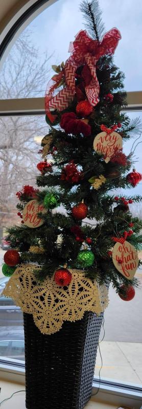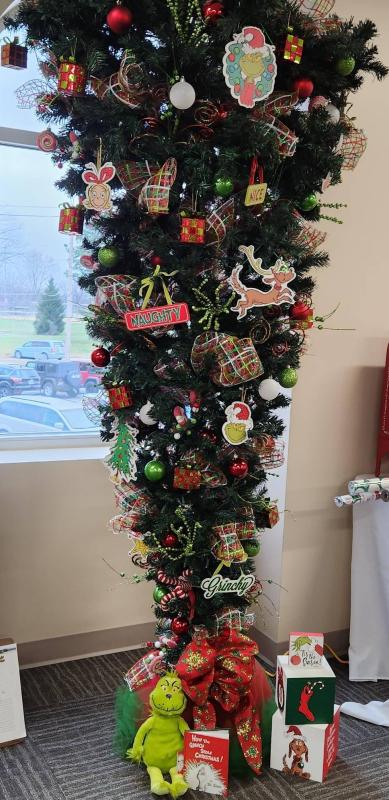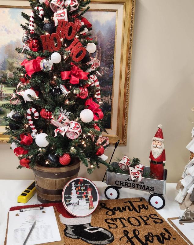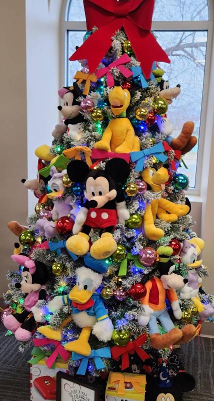 You will see characters from the Peanuts cartoon, a Hawkeye tree, a charcuterie board along with a couple of bottles of wine, gorgeous wreaths, a bench made from a GMC tailgate, a Disney display, a quilt, Mickey Mouse even made it into the display. Then there's the Polar Express, and if your holiday season just feels upside down, for whatever reason, there's a tree for you as well! If you have a fireman in your family, there's a tree just for them! There are so many creative Christmas displays, that one can enjoy.