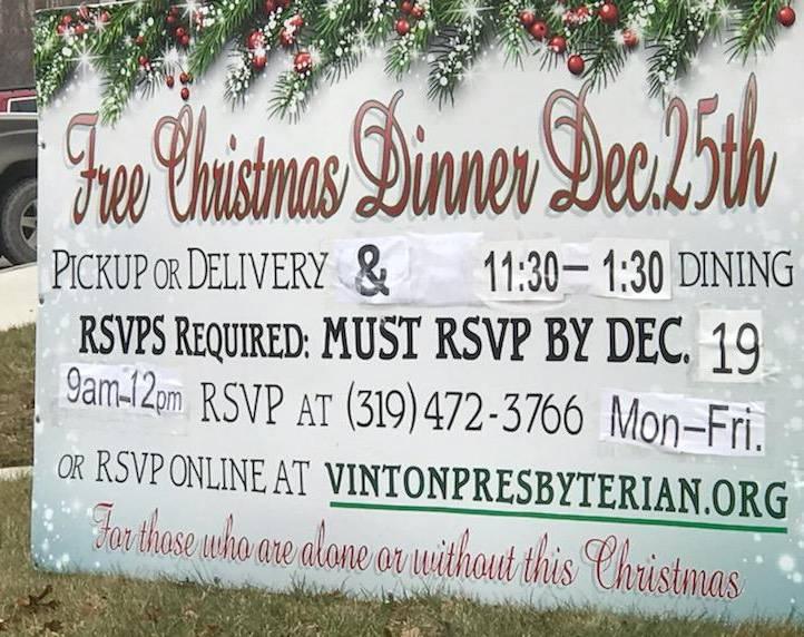 The Vinton Presbyterian Church will serve the community this Christmas with a meal provided for those alone or in need of a little Christmas this year. The free Christmas dinner will be served on Christmas Day, December 25, from 11:30 a.m. to 1:30 p.m.