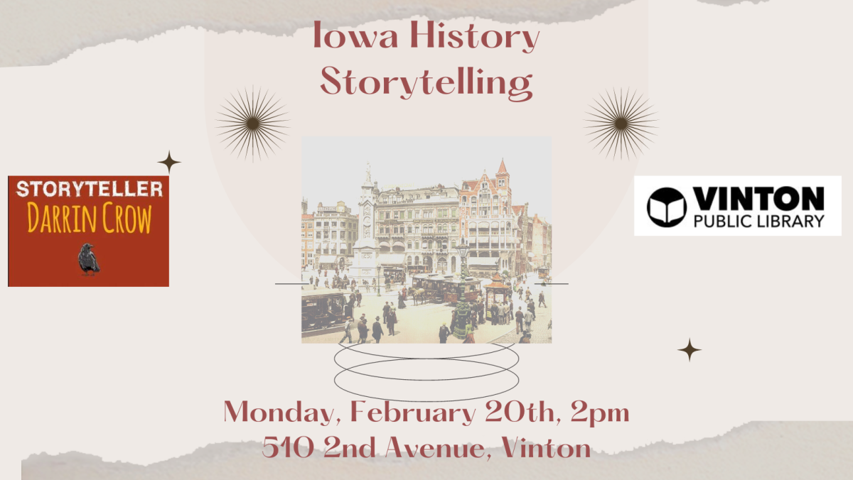 The Vinton Public Library will host Darrin Crow on Monday, February 20th. Crow will begin his presentation at 2:00 p.m.