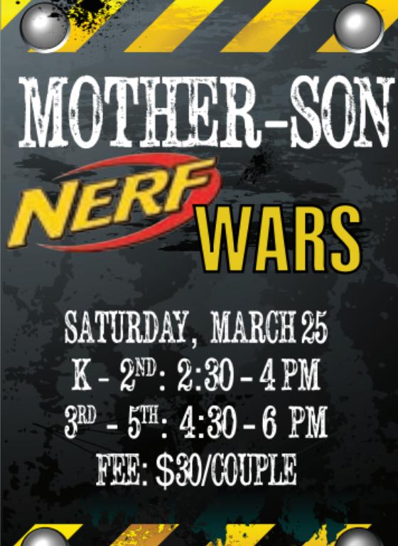 Dividing the ages into two groups, mothers and sons can battle it out at the Vinton Skate Center during the Mother-Son Nerf Wars.