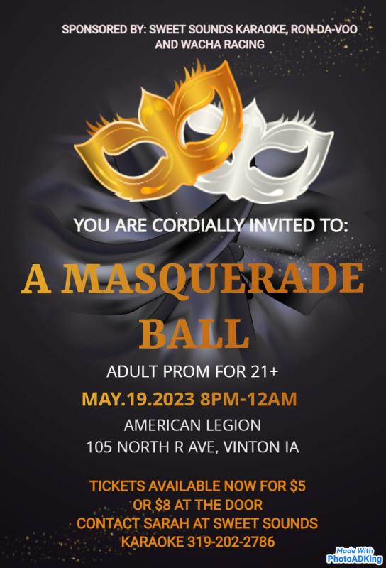 On May 19th there will be a Masquerade Ball held at the American Legion located at 105 North R Ave. in Vinton.
