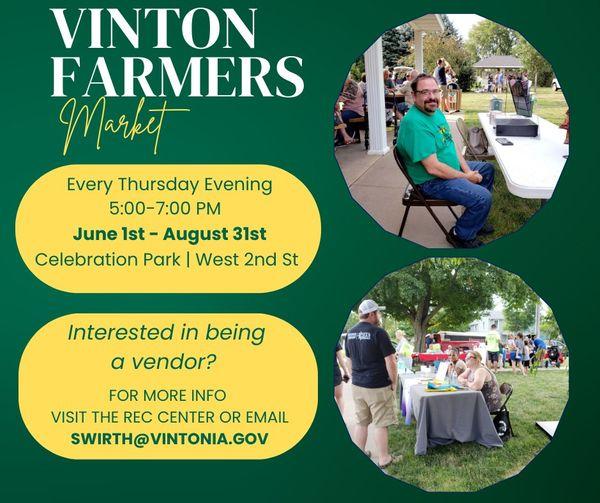If you're interested in being a vendor, stop at the Rec center or email swirth@vintonia.gov