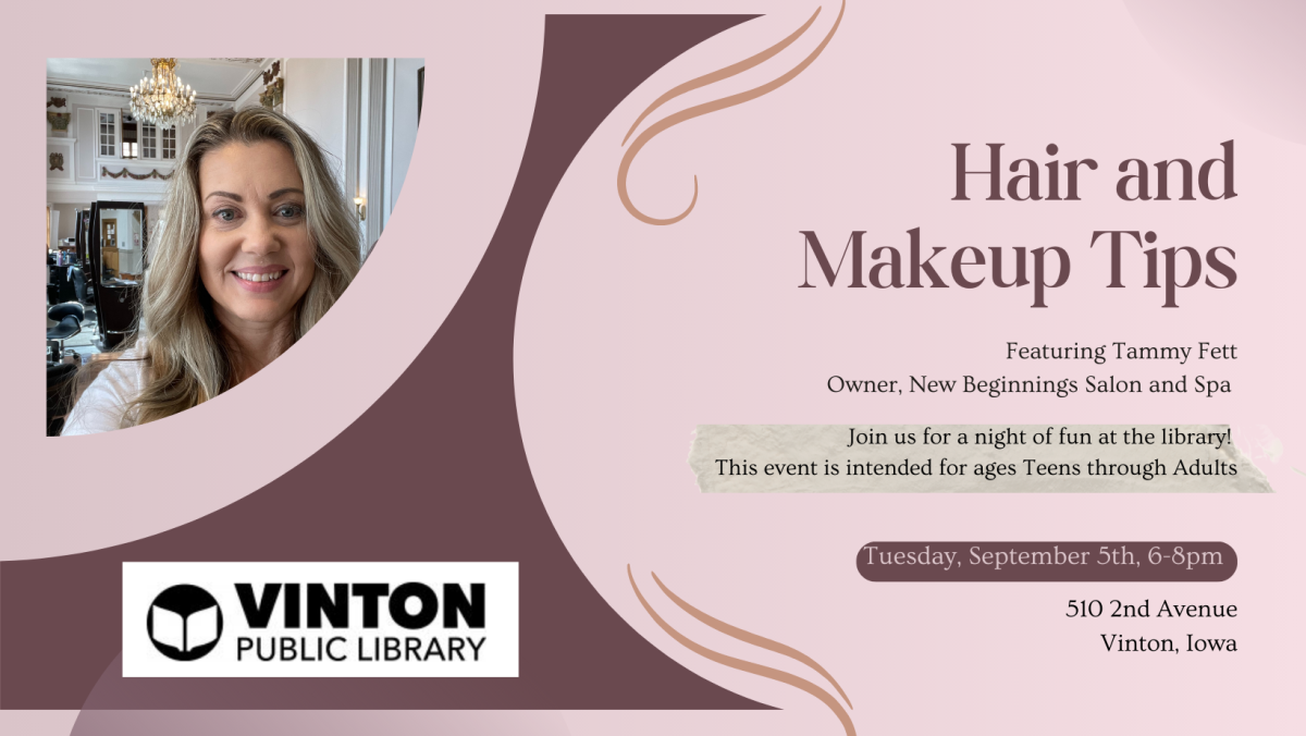 - September 5, 6-8 pm; New Beginnings Salon Hair and Makeup Tutorial for Teens and Adults