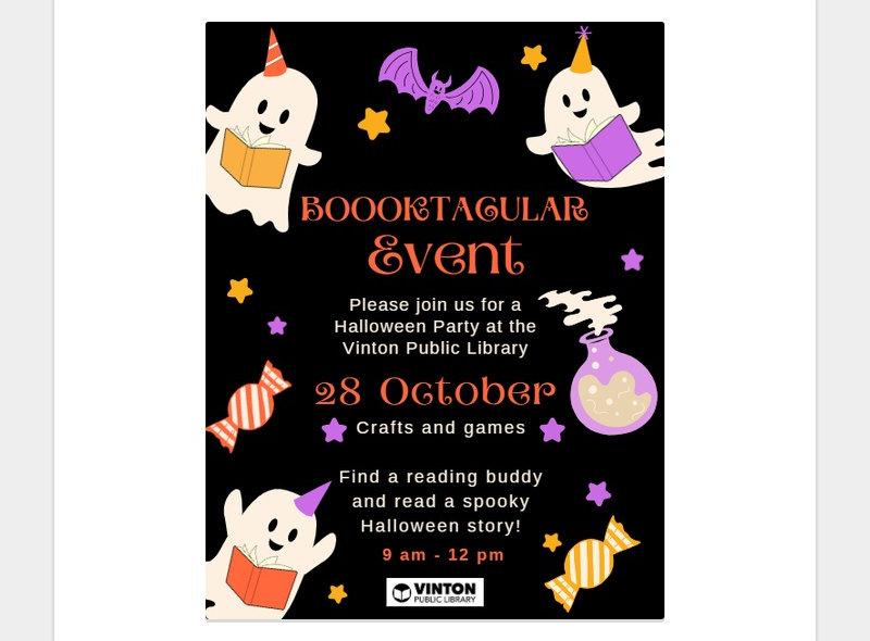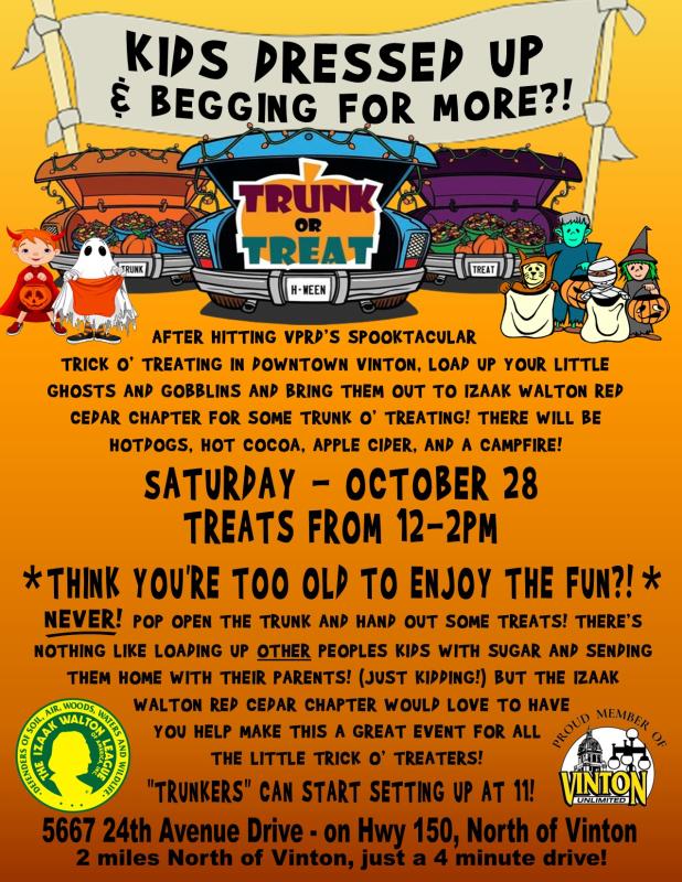 Trick or Treating in Vinton will be held on Tuesday, October 31 from 5-8:00 p.m.