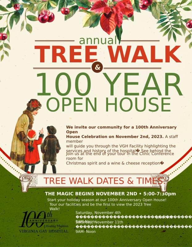 Virginia Gay Hospital Health Care Foundation is grateful for our Respiratory Therapy and Human Resources Department (Nancy Hlas, Manager, Brooke Salger, Human Resources Director & Renee Bear, HR Assistant) in hosting the VGH Tree Walk annual event beginning Thursday, Nov. 2nd from 5-7:30pm.