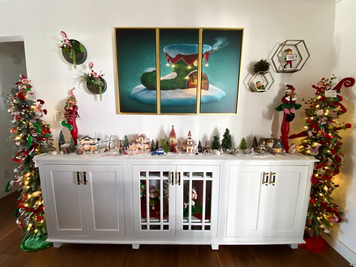 Denny & Desi McLaughlin recently purchased the house at 12 Bluff Lane in La Porte City and have done extensive remodeling of the house. One area that Desi especially enjoys at Christmas time is where all the Elves are displayed, and one can only guess that the Elves might be up to some tricks when left alone. The McLaughlins also enjoy the front and back porches on the house and can be found enjoying them throughout the year.