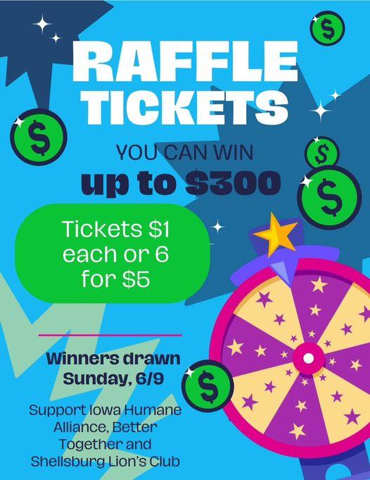 Tickets are just $1 each or 6 for $5 and winners can get $100, $200 or $300 CASH!!! Winners will be drawn on June 9, 2024.