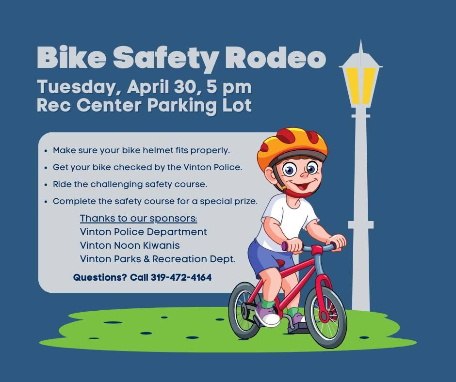 The Bike Safety Rodeo will be held on Tuesday, April 30, 2024 from