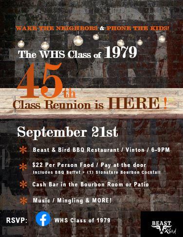 Washington High School graduates from the class of 1979 will be holding their 45th Class Reunion!