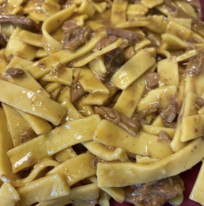 The menu will be homemade Beef & Noodles, green beans, a roll, and fruit. Meals are available for a free will donation.