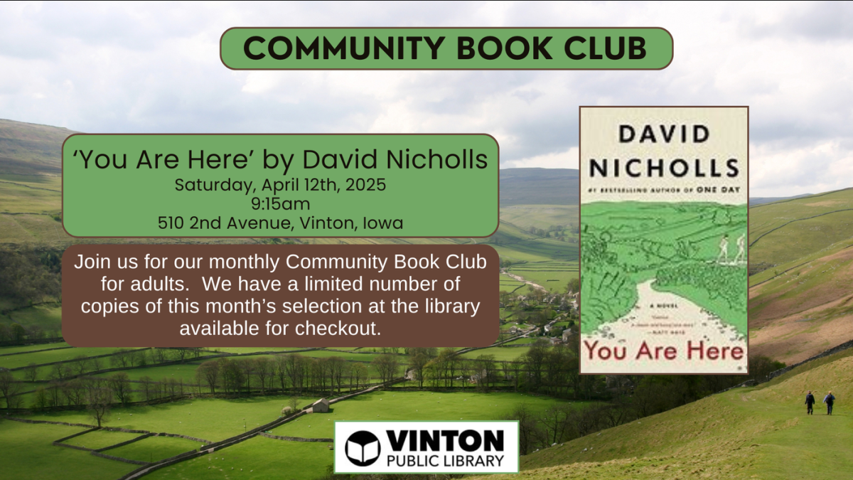 This month the Community Book Club discussion will be from the book, "You are here" by David Nicholls.
