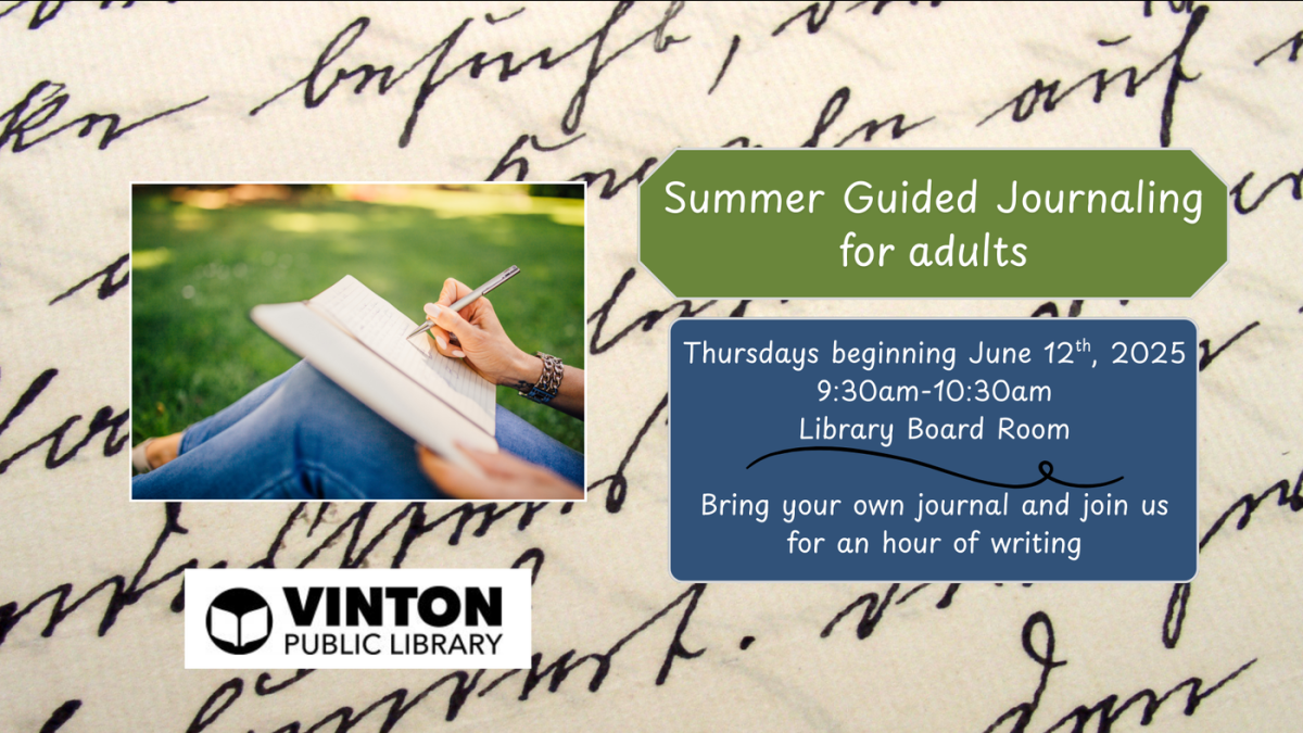 Bring your own journal and join us for an hour of writing. The Library Director provides writing prompts. This is a great opportunity to begin or expand your personal journaling practice.