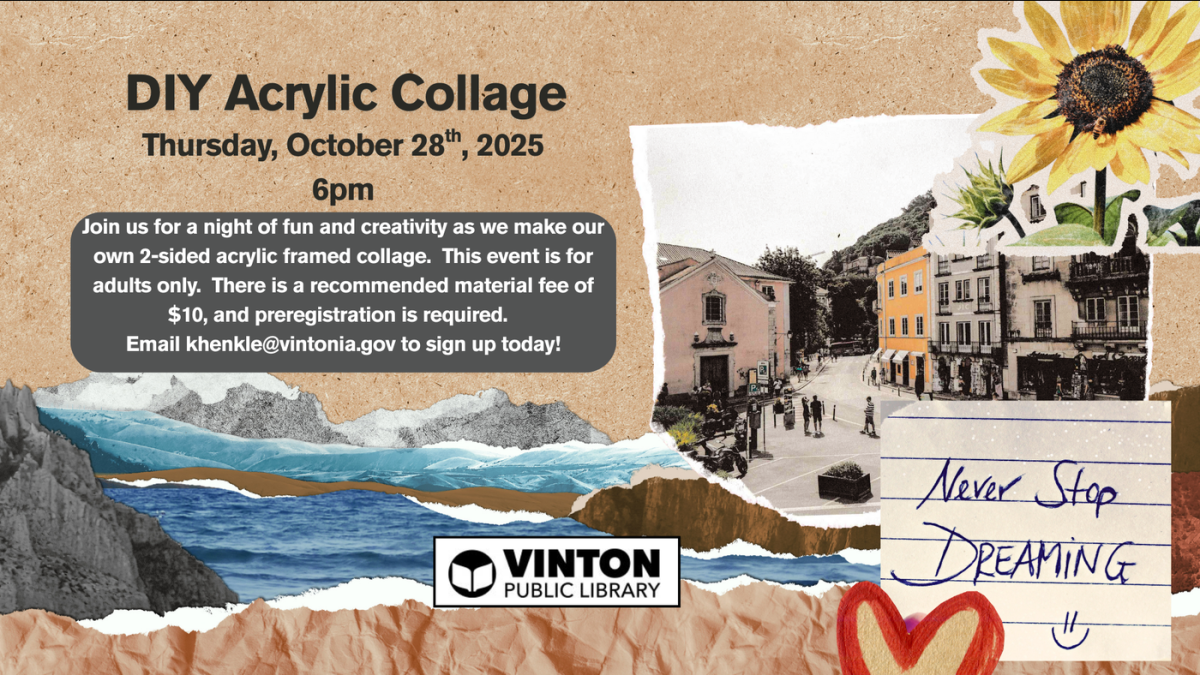 Join us for a night of fun and creativity as we make our own 2-sided acrylic framed collage. This event is for adults only.