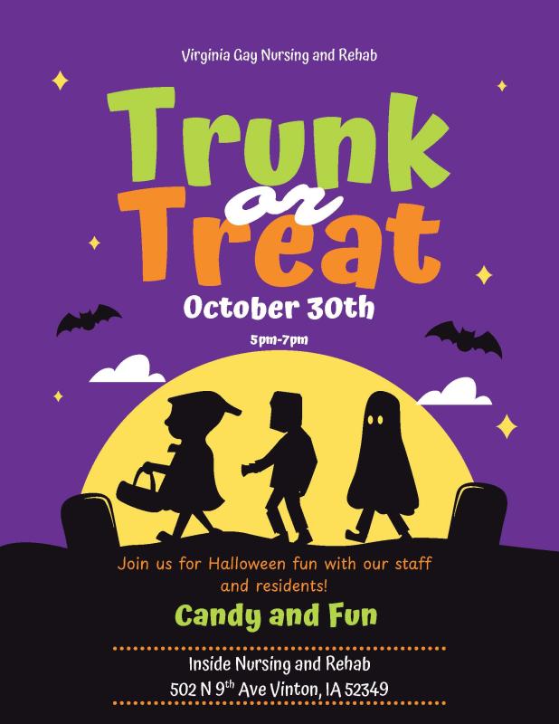 Virginia Gay Nursing and Rehab will hold their Trunk or Treat on Thursday, October 30, 2025 from 5-7:00 p.m.