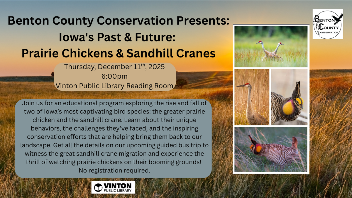 Benton County Conservation Presents Iowa's Past and Future: Prairie Chickens and Sandhill Cranes