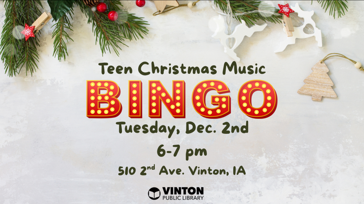 Teens are invited to stop by the Vinton Public Library, enjoy festive holiday tunes, and play for a chance to win some sweet treats!