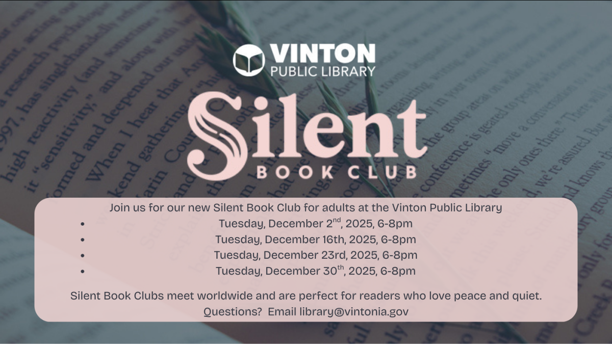 Join us for our Silent Book Club for adults! We will meet at the following dates and times: