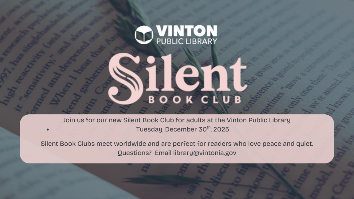 Join us for our Silent Book Club for adults! We will meet on Tuesday, December 30th, 2025, at 6pm.