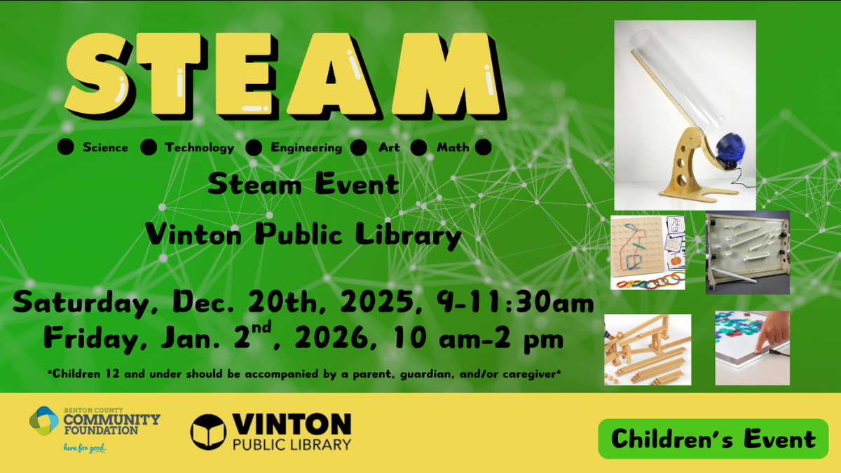 Join us on Friday, January 2nd, 2026, from 10am-2pm for some STEAM fun for kids!