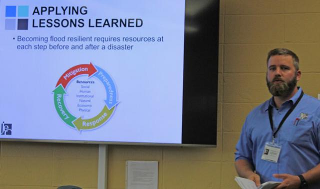The group meets to learn about the effects of flooding and gives an opportunity for others to share their flooding experiences and advice with friends and neighbors.