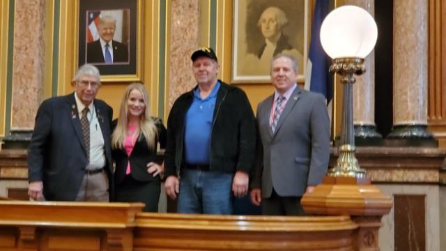 This week, Rep. Dave Maxwell (R-Gibson) and Rep. Tom Gerhold (R-Atkins) welcomed constituents from Iowa County, Abby Maas and Jim Johnson, to the Iowa House of Representatives. Maas and Johnson were visiting the Capitol to discuss the future of wind farms with their representatives.