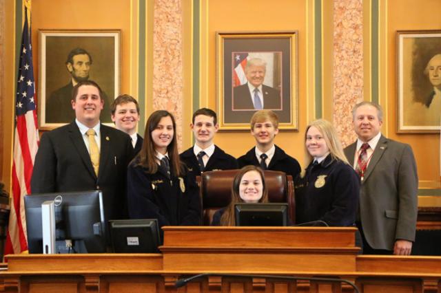 This week, Rep. Tom Gerhold (R-Atkins) welcomed students involved in Benton and Belle Plaine FFA to the Iowa House of Representatives. The students were visiting the Capitol for the Legislative Symposium, which is designed to build character and promote citizenship, volunteerism and patriotism.