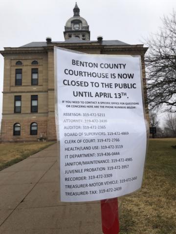 The Benton County Board of Supervisors voted to extend the following decision to close Benton County facilities through the April 30th date set by Iowa Governor, Kim Reynolds.