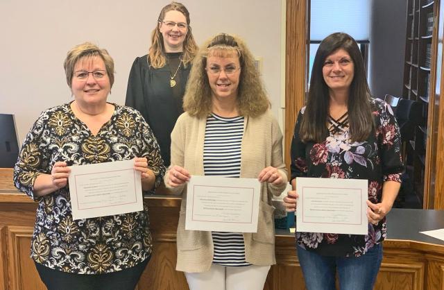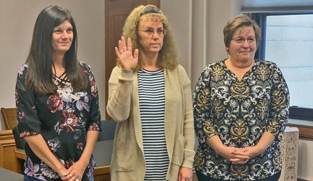 Sworn in on Tuesday morning in the 2nd-floor courtroom, Schoettmer is no stranger to the job. She began working in the Treasurer's office in September of 1997 as a clerk. In July of 1999, she was appointed a Deputy Treasurer and in September of 2002, she started issuing driver's licenses serving as the Driver's License Deputy for 17 1/2 years. Prior to working at the courthouse, she worked for Farmer's Bank and Trust.