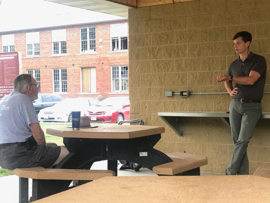 On a 90 degree afternoon, a small group of residents came to meet State Auditor Rob Sands at Celebration Park. Arriving at noon, Sands spent an hour speaking to and answering the questions of area residents.
