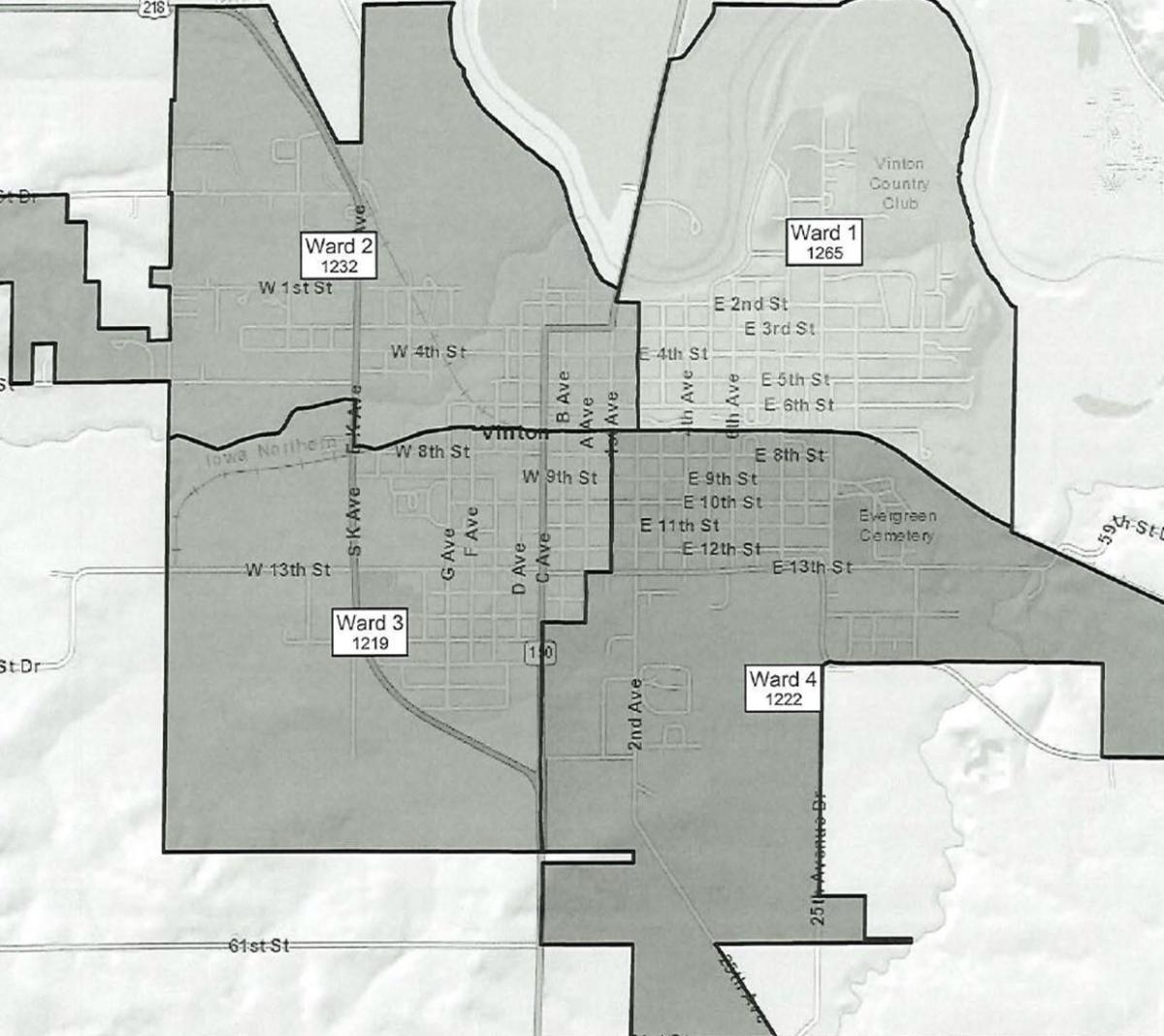The City of Vinton will hold a public hearing to discuss proposed changes to ward and precinct boundaries within the City limits. Changes are a result of the 2020 census results.