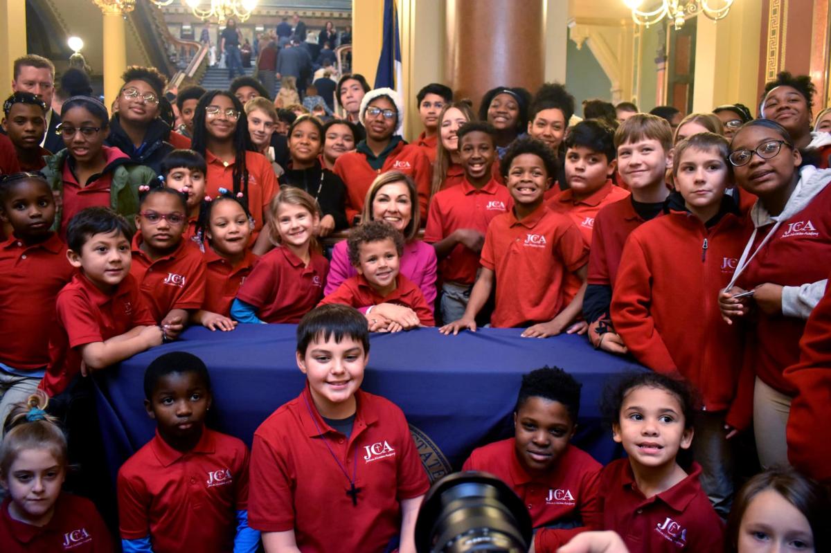 Governor Reynolds signed HF 68 into law today amid hundreds of supporters in the Iowa State Capitol. The Students First Act makes state education funding available for K-12 students who choose to attend private schools.