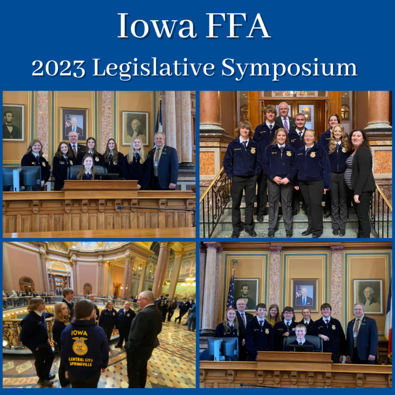The annual Iowa FFA legislative symposium was on Tuesday, January 31st. I had many local chapters come to visit: Central City-Springville, Belle Plaine, Vinton-Shellsburg, and Benton Community. Students come to meet with legislators, tour the capitol, and speak with their elected officials. It is always great to hear from our Iowa High School youth. These FFA kids will be the leaders of tomorrow!