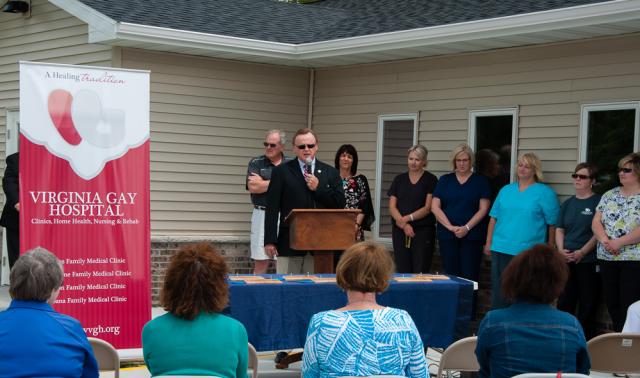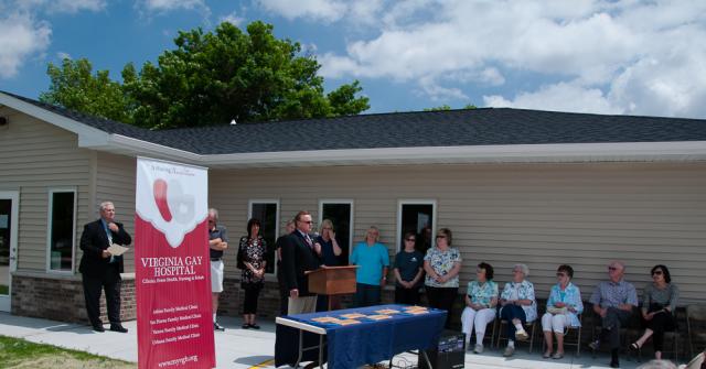 Virginia Gay Hospital and Clinic leaders gathered in Van Horne on Friday to celebrate the completion of the renovation/expansion project, which includes adding another 1,100 square feet to the existing 2,200, and substantially enlarging the patient parking area.