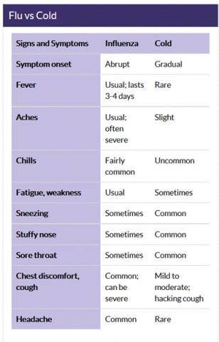 Flu symptoms may include fever, headache, tiredness, cough, sore throat, nasal congestion, and body aches. Illness typically lasts two to seven days. The flu is a respiratory illness caused by viruses. The flu comes on suddenly and may cause severe illness or even death in people such as the very young or very old, or those who have underlying health conditions.