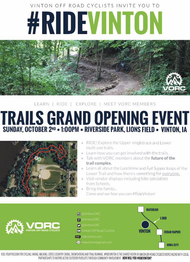 The Vinton Parks and Recreation Department and the Vinton Off Road Cyclists (VORC) held a grand opening of the bike trails near Riverside Park on Sunday.