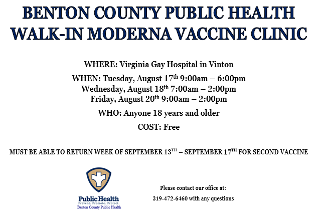 The Moderna Vaccine Walk-in Clinic will be held at the Virginia Gay Hospital
