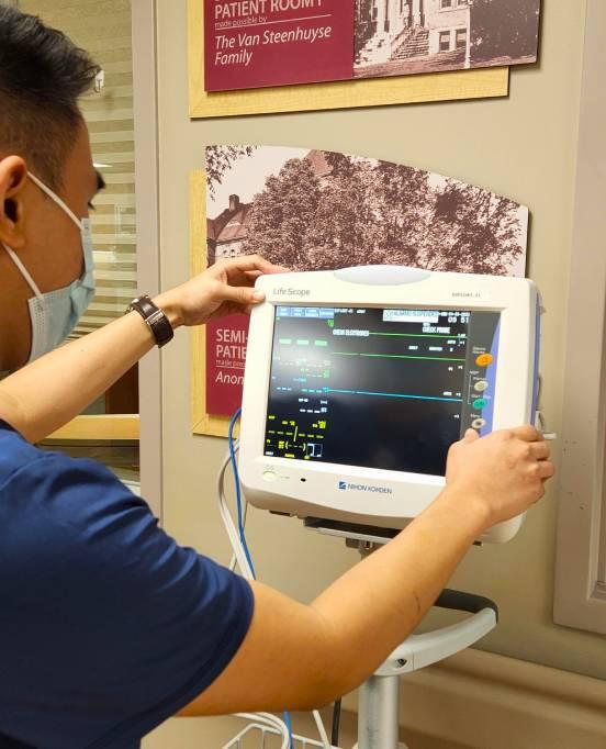 Virginia Gay went live with a new cardiac monitoring system on Wednesday. The Emergency Room, Med-Surg and Operating Room are transitioning to the new Nihon Kohden monitoring system. The system will be integrating the data with the EPIC electronic health record. This integration will let the clinical staff spend a little less time charting and more time with our patients.