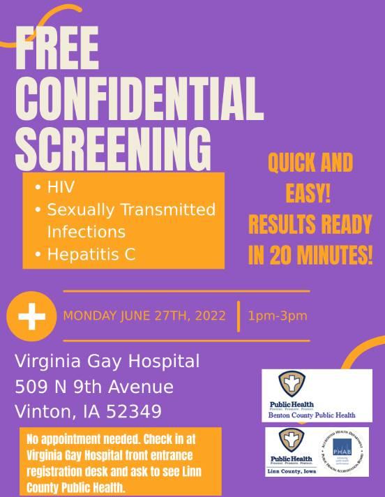Testing will be done by Linn County Public Health's outreach coordinator at Virginia Gay Hospital.
