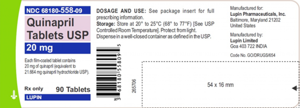 Lupin Pharmaceuticals Inc. is voluntarily recalling four (4) lots of Quinapril Tablets to the patient (consumer/user) level due to the presence of a nitrosamine impurity, N-Nitroso-Quinapril, observed in recent testing above the Acceptable Daily Intake (ADI) level. To date, Lupin has received no reports of illness that appear to relate to this issue.