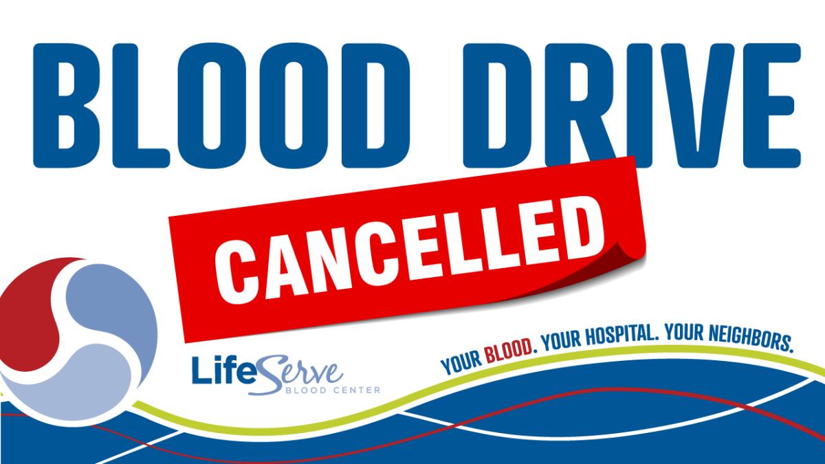 The Virginia Gay Hospital and Vinton Community Blood Drive scheduled for January 24th has been canceled. The next event will be held on March 28, 2023.