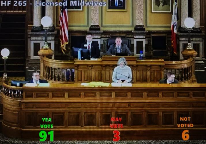 The bill passed on a 91-3 vote. Rep. Monica Kurth, D-Davenport, said the bill ensures practicing midwives in Iowa are held to high training and professional standards. The bill will ensure pregnant patients receive high-quality care as Iowa struggles with a maternal health care provider shortage, she said.