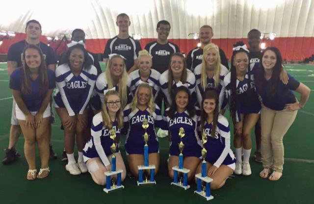 “We just took our cheerleaders to Wisconsin Dells this weekend for the largest cheer camp held by UCA. Our squad came home with four trophies: 7th place in cheer, 7th place in sideline, 7th place overall and most improved. I basically coach the stunting portions of cheerleading. I plan on staying with the season this year as a assistant but hope to find a university to coach at next year.”