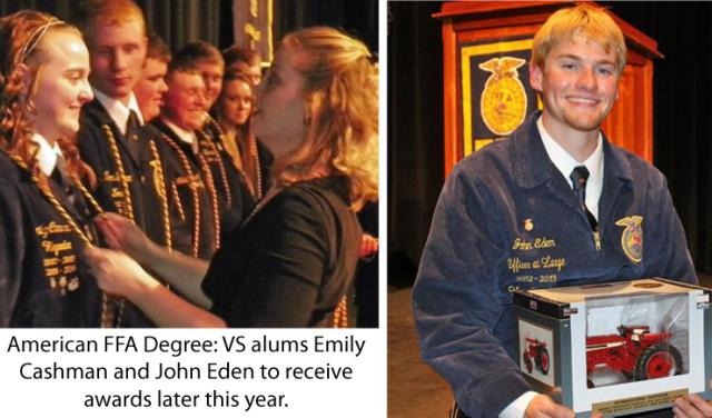 Emily is one of two Vinton-Shellsburg alumni who learned this week that they have been chosen as recipients of the American FFA Degree. Emily nd John Eden have each been invited to accept their award at the National Convention in Indianapolis this fall.